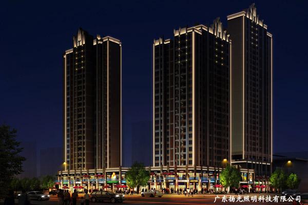 華生中心建筑主要是由西北側信安大道商務綜合樓,東南側住宅樓組成的樓宇,其照明特點也注重建筑的功能關系,層次關第,把握好照明亮度級別及控制。根據(jù)建筑功能與結構的不同,主要分為四個亮度級別。