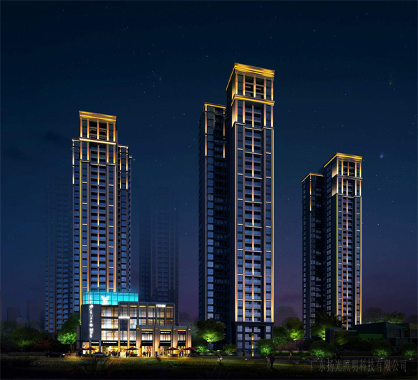 立面燈光:以簡潔明快的線條表現(xiàn)建筑立面的層次,避免過多的燈光對(duì)居民夜間正常生活的影響,營造舒適宜居的居住環(huán)境。