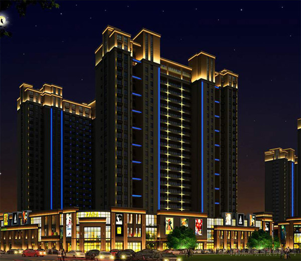 建筑的頂部與底部燈光,突出清晰明亮的建筑遠(yuǎn)景視覺效果,提升建筑夜晚對(duì)外的吸引力。
