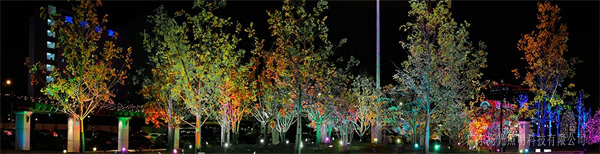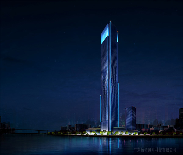 采用泛光突出頂部,線光表現(xiàn)輪廓,配合點光彰顯建筑特質