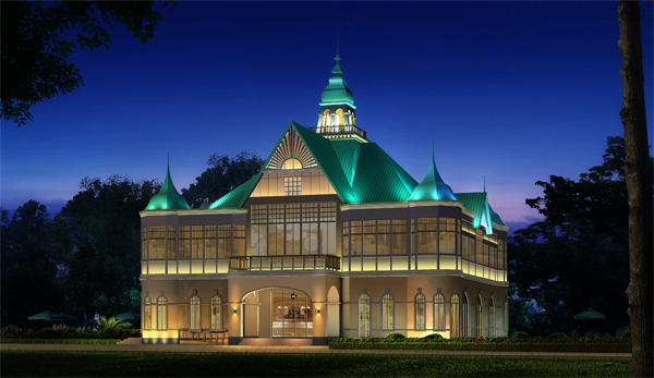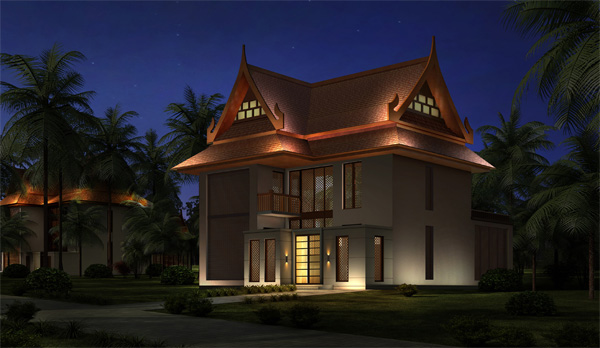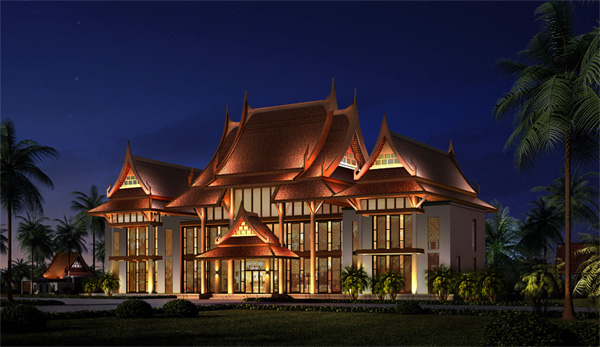 燈光的塑造離不開建筑,泰國館具有鮮明的泰國佛教文化色彩和傳統(tǒng)的民族特色建筑風(fēng)格。建筑的外墻多以龕窗加以裝飾,與中國傳統(tǒng)建筑中的木架結(jié)構(gòu)相似,屋頂多為懸山式樣,與我國傣族地區(qū)的佛殿建筑結(jié)構(gòu)有其相像之處,泰國、西雙版納就有很多類似建筑。